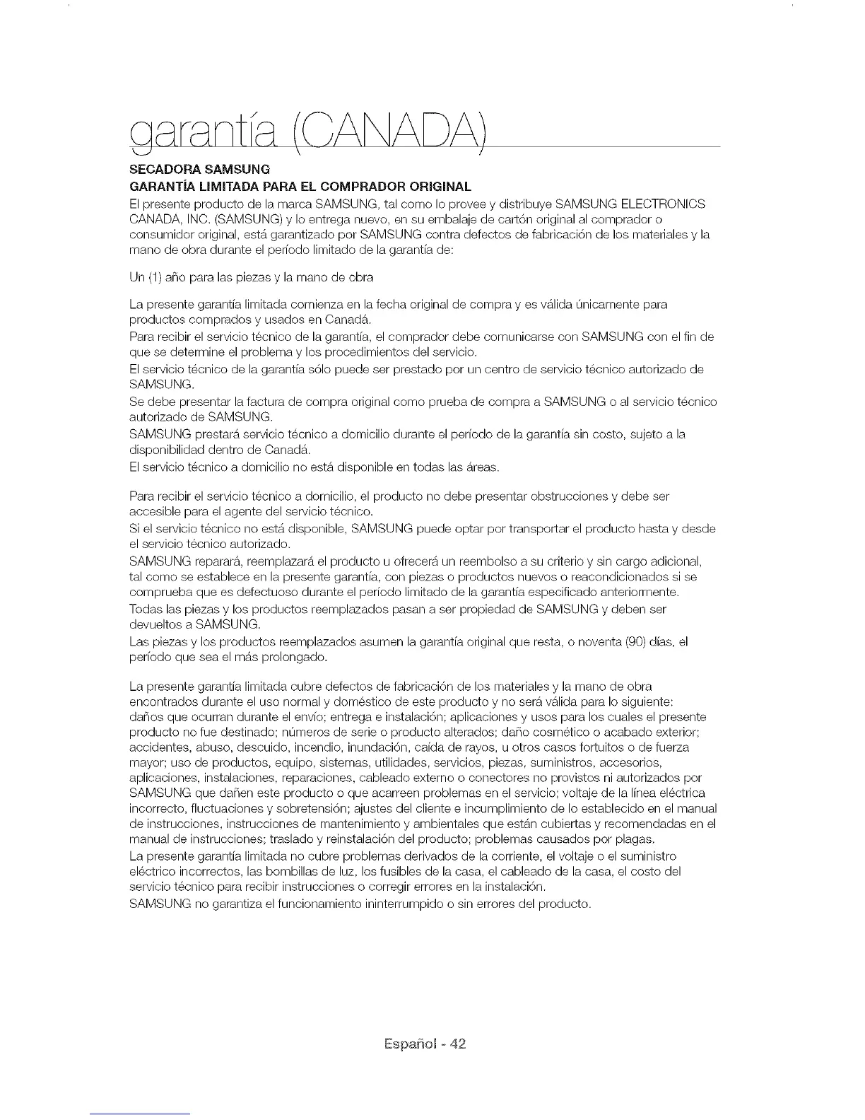 consumidor original, est_ garantizado por SAMSUNG contra defectos de fabricaci6n de los materiales y la