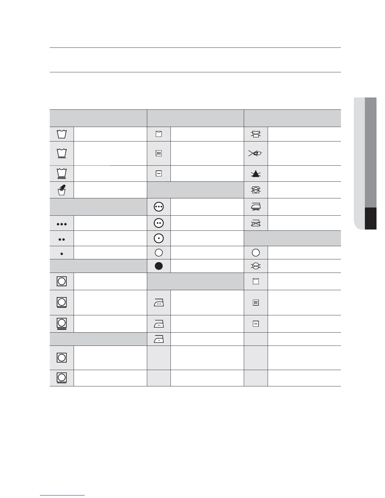The following symbols provide garment care direction. The Clothing care labels include symbols for