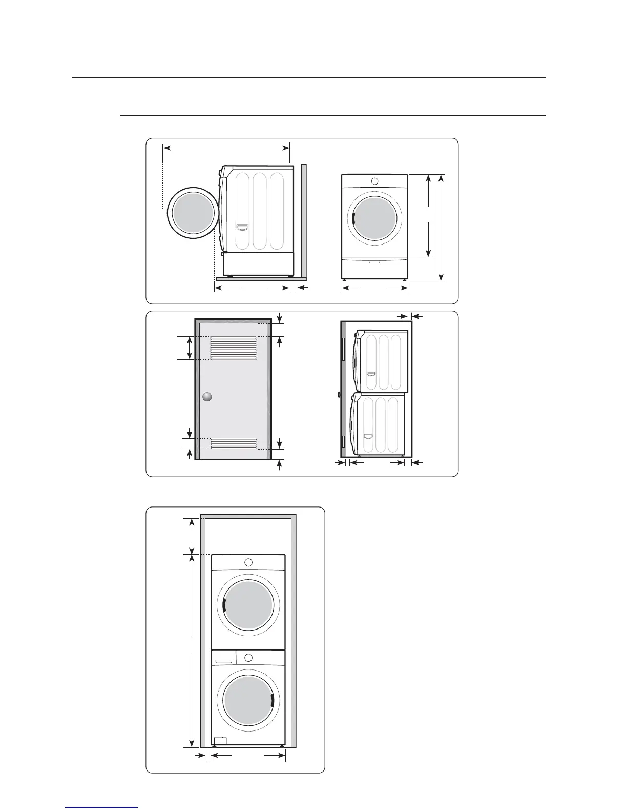Dimensiones requeridas de la instalación con kit de apilamiento