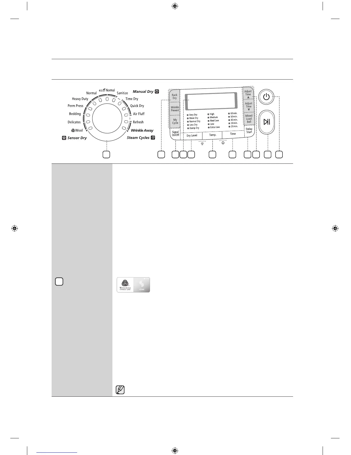 Time Dry – Time Dry allows you to select the desired cycle time in minutes.