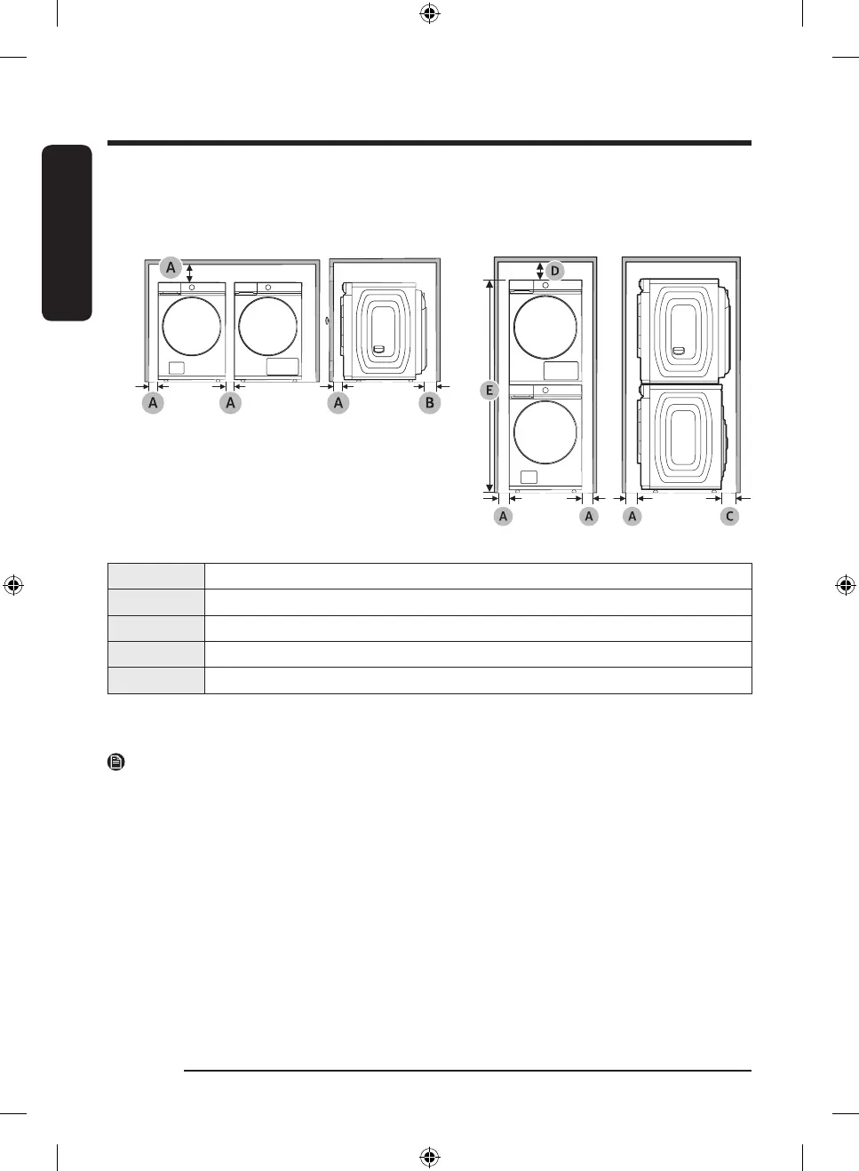 (B*): This clearance requirement only applies to the dryer. For the washer's clearance requirement, see the