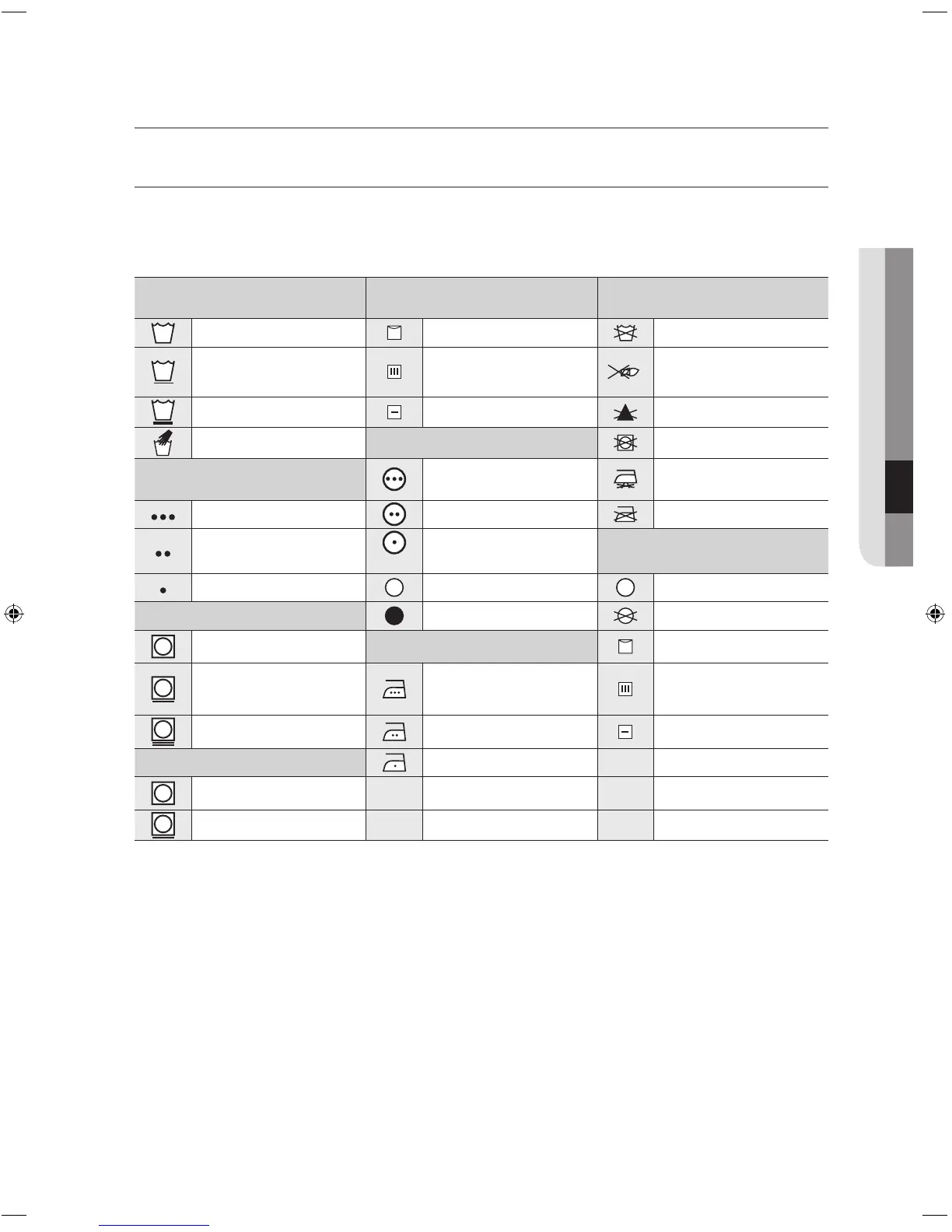 The following symbols provide garment care direction. The Clothing care labels include symbols for