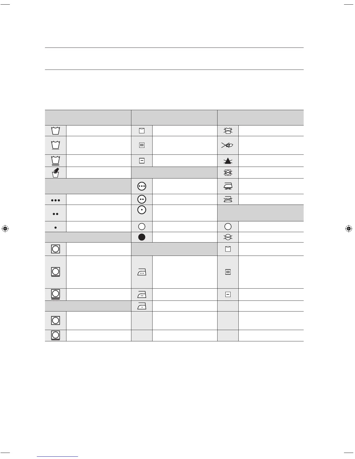 Los siguientes símbolos ofrecen indicaciones acerca de las prendas. La etiqueta de indicaciones de la