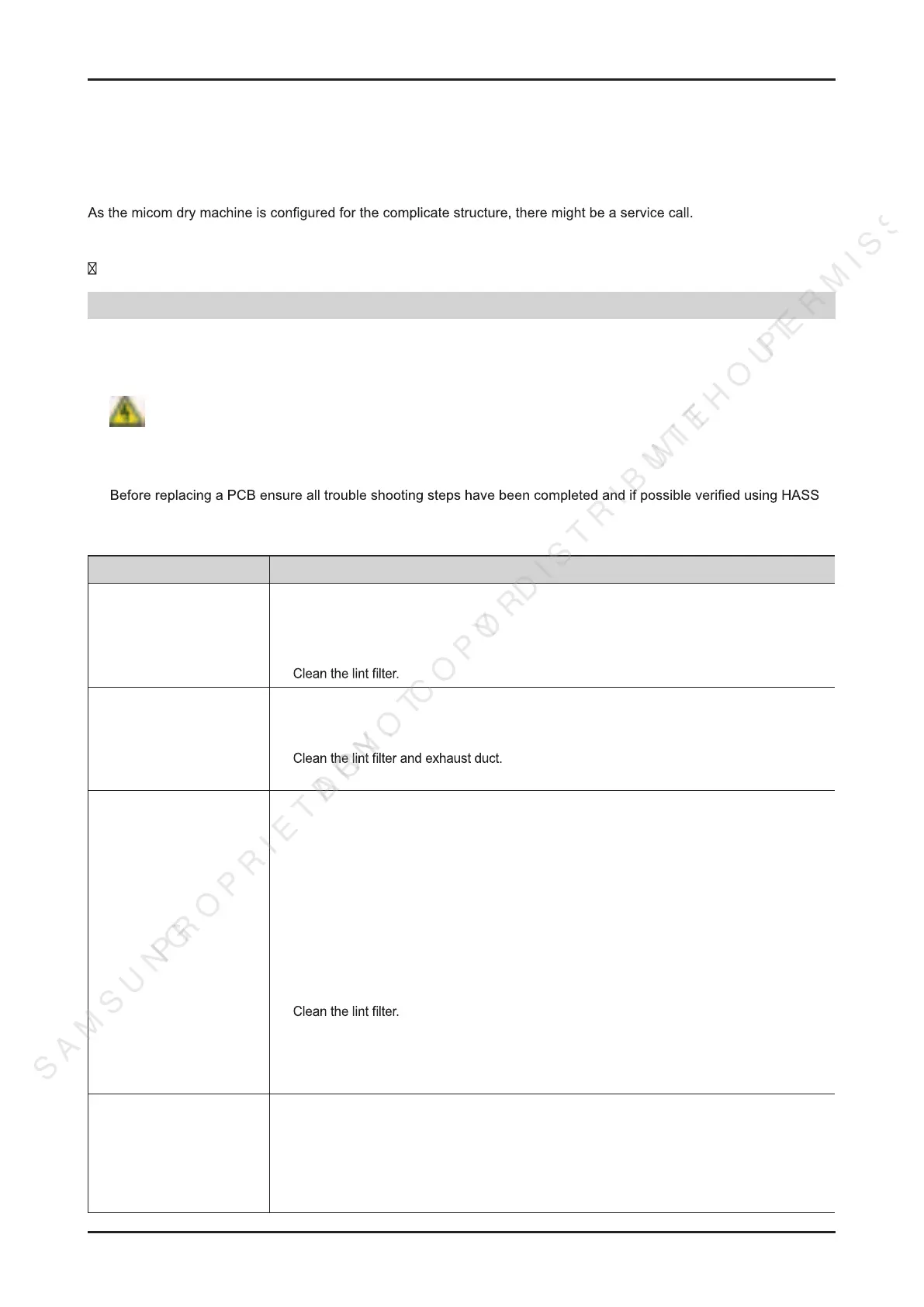 • Check the exhaust system for lint buildup. Ducting should be inspected and cleaned annually.