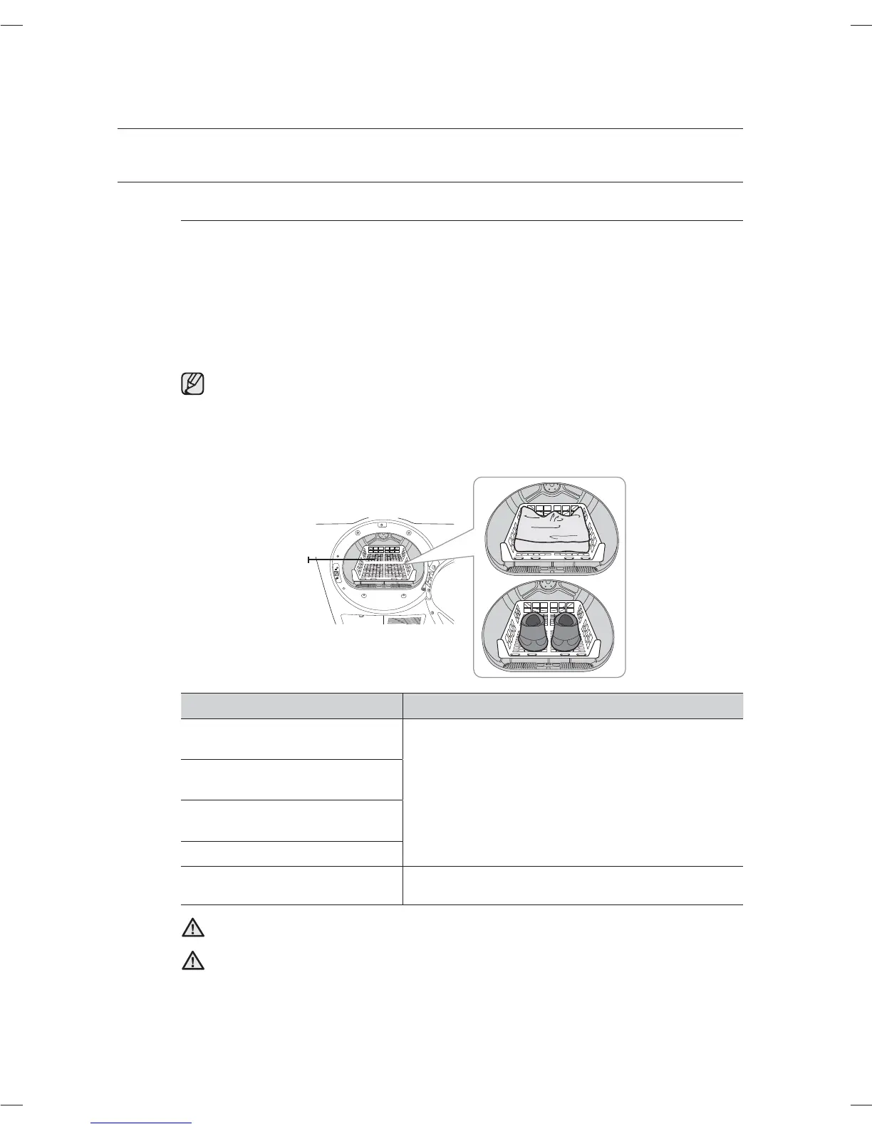 Since damage may result when drying shoes, use the Rack Dry course to dry shoes.