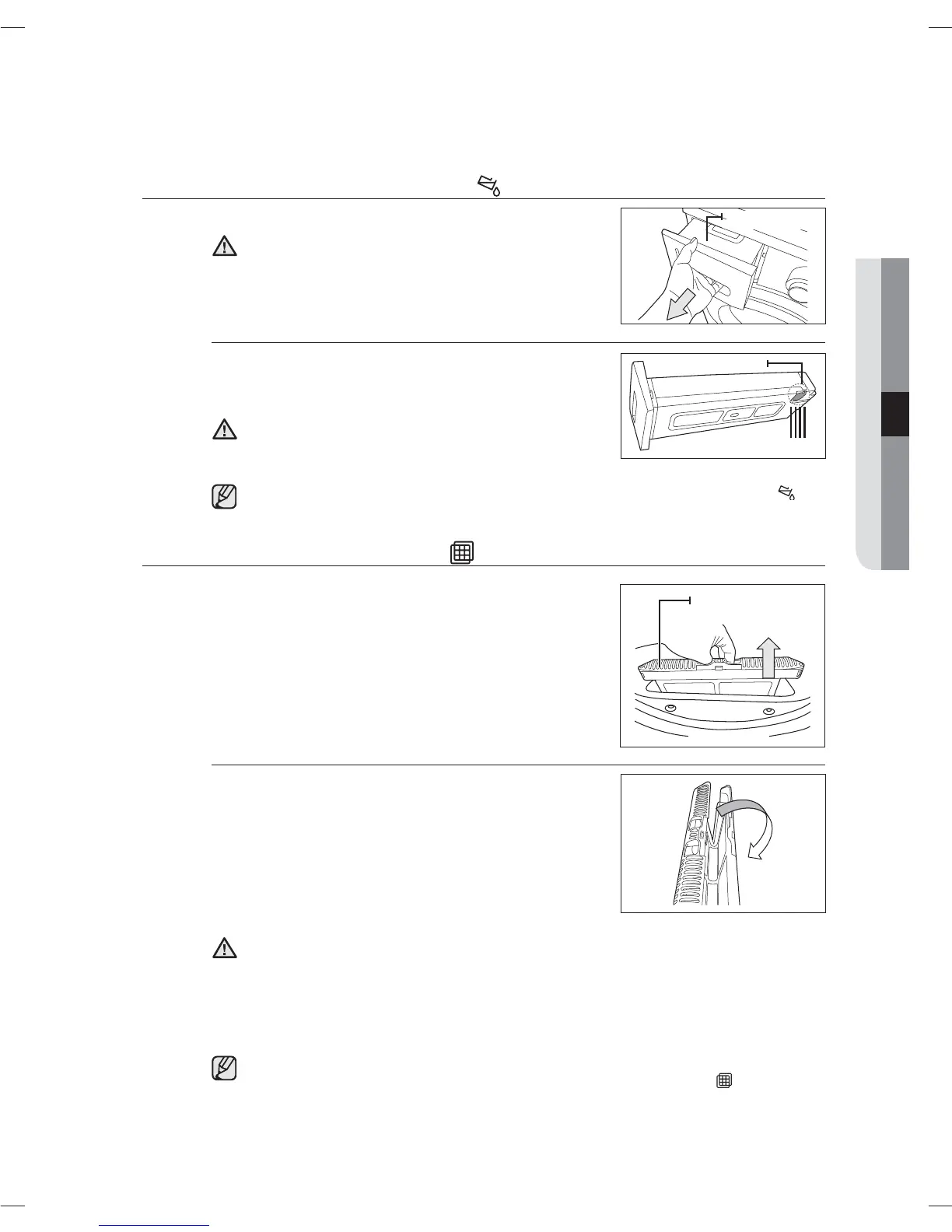 • Since the drying performance may be degraded and there is a danger of fire if you use a
