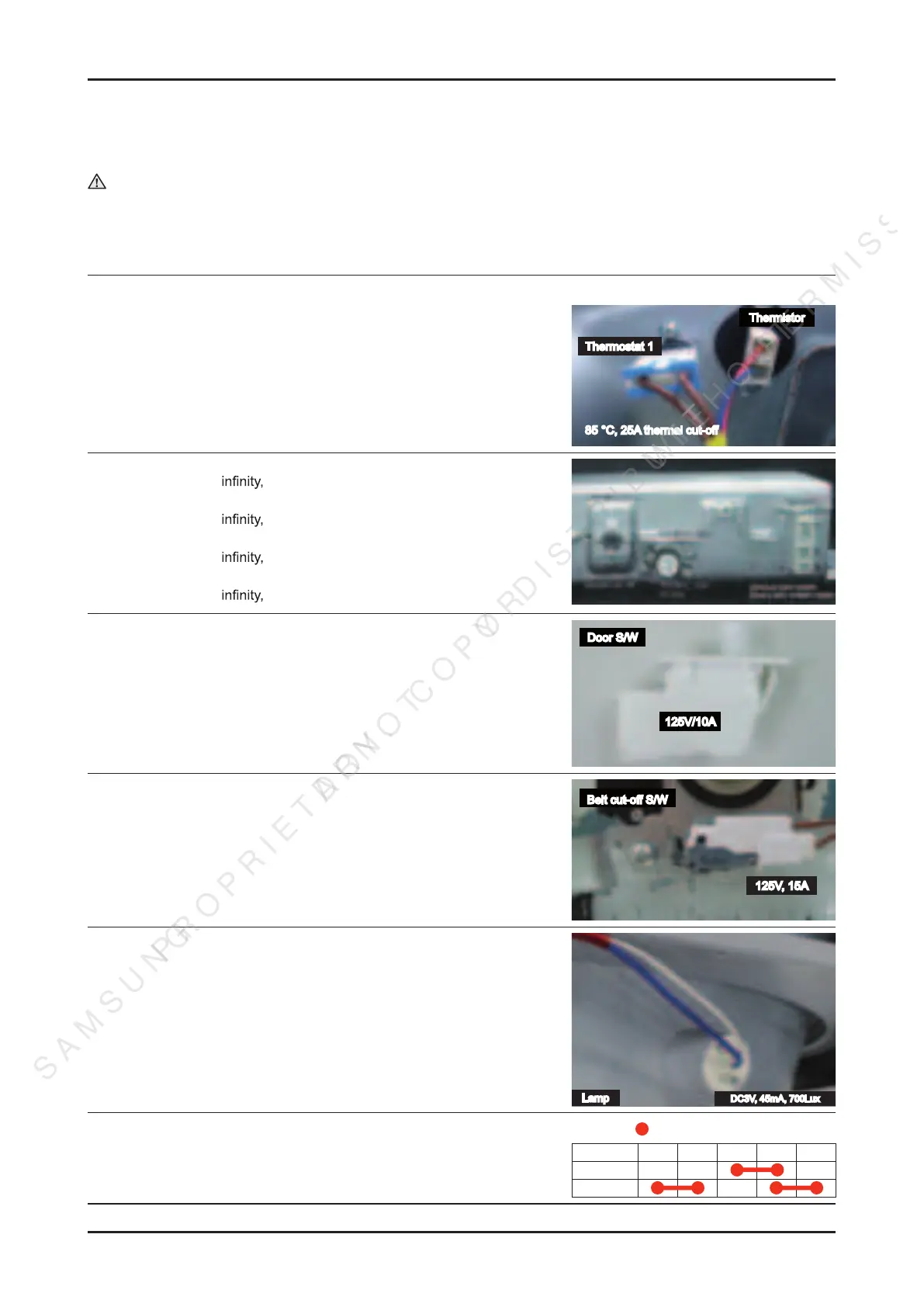 • Thermostat 3 resistance < 1Ω (Red & Black wire)