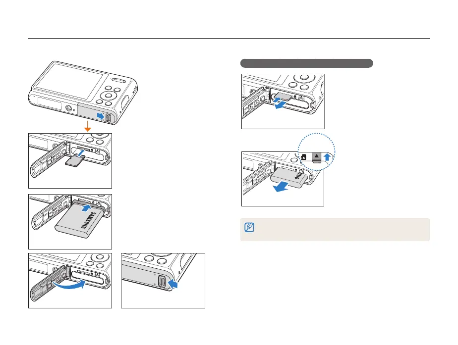 Inserting the battery and memory card