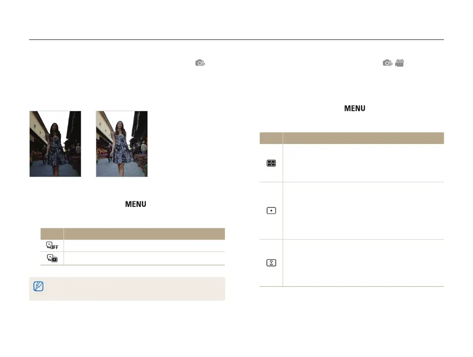 Select Shooting or Movie →Metering → an option.