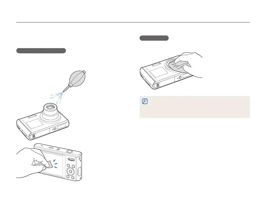 gently with a soft cloth. If any dust remains, apply lens cleaning