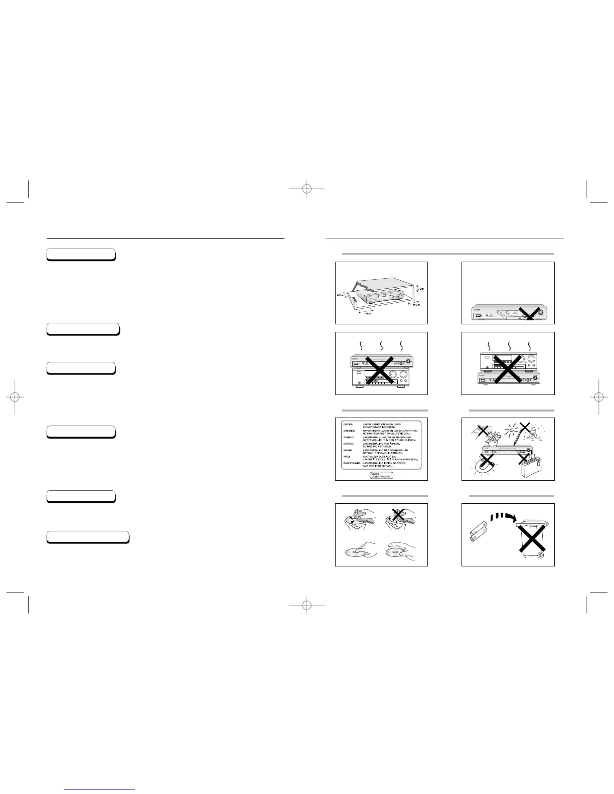 Jangan menaruh player di atas pengeras suara atau peralatan yang bisa menjadi panas.