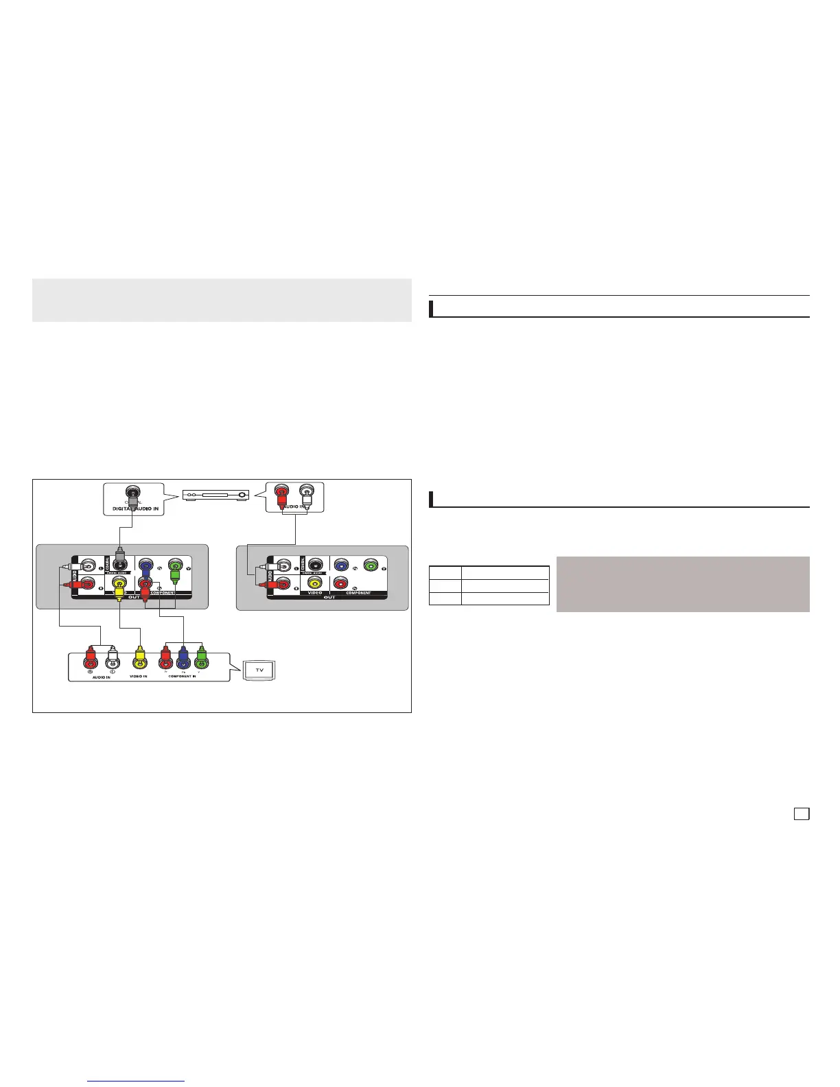 1. A l’aide des câbles audio, raccordez les sorties AUDIO OUT (rouge et blanche) ou 5.1 (rouge