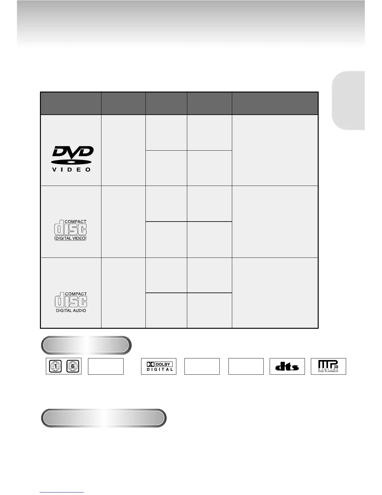 This DVD player is capable of playing the following types of discs with the