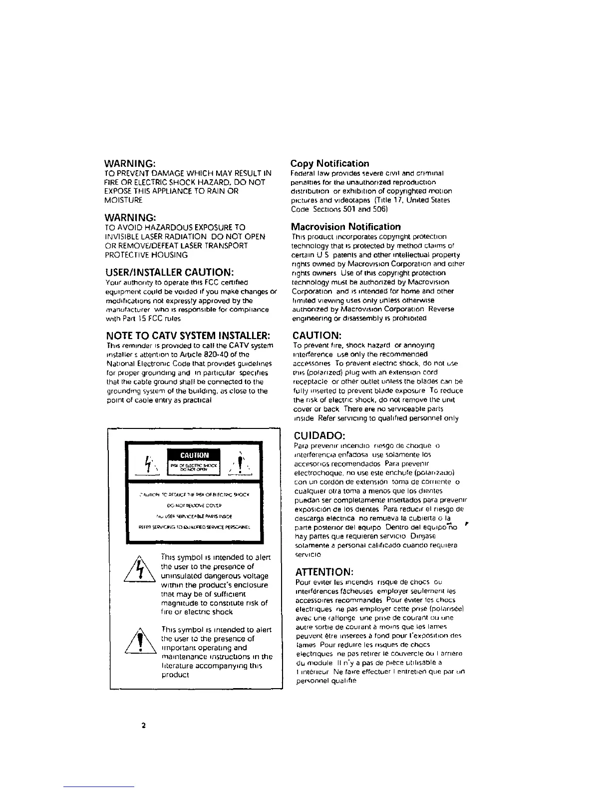 NOTE TO CATV SYSTEM INSTALLER: