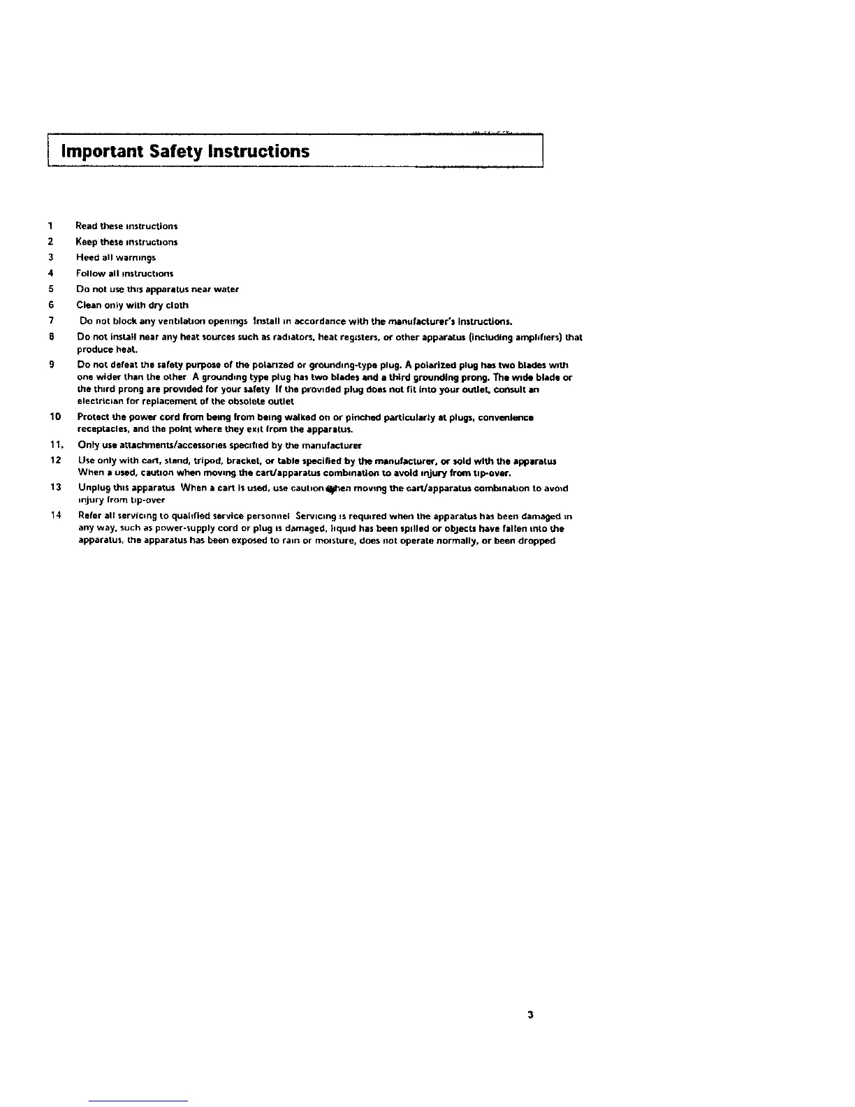 14 Refer all servicing to quaidled service personnel Servicing is required when the apparatus has been damaged in