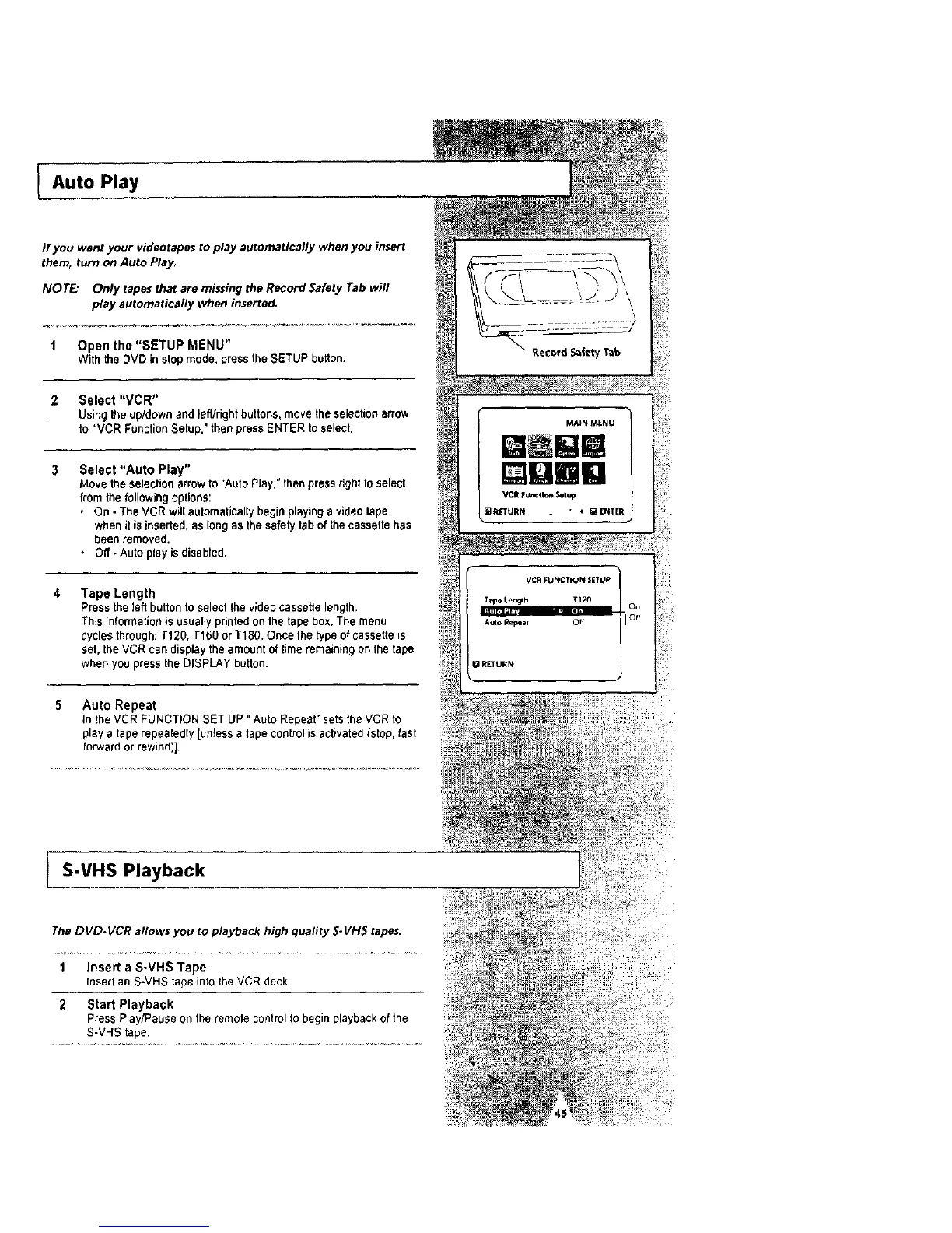 The DVD-VCR allows you to playback high quality S. VH5 tapes.