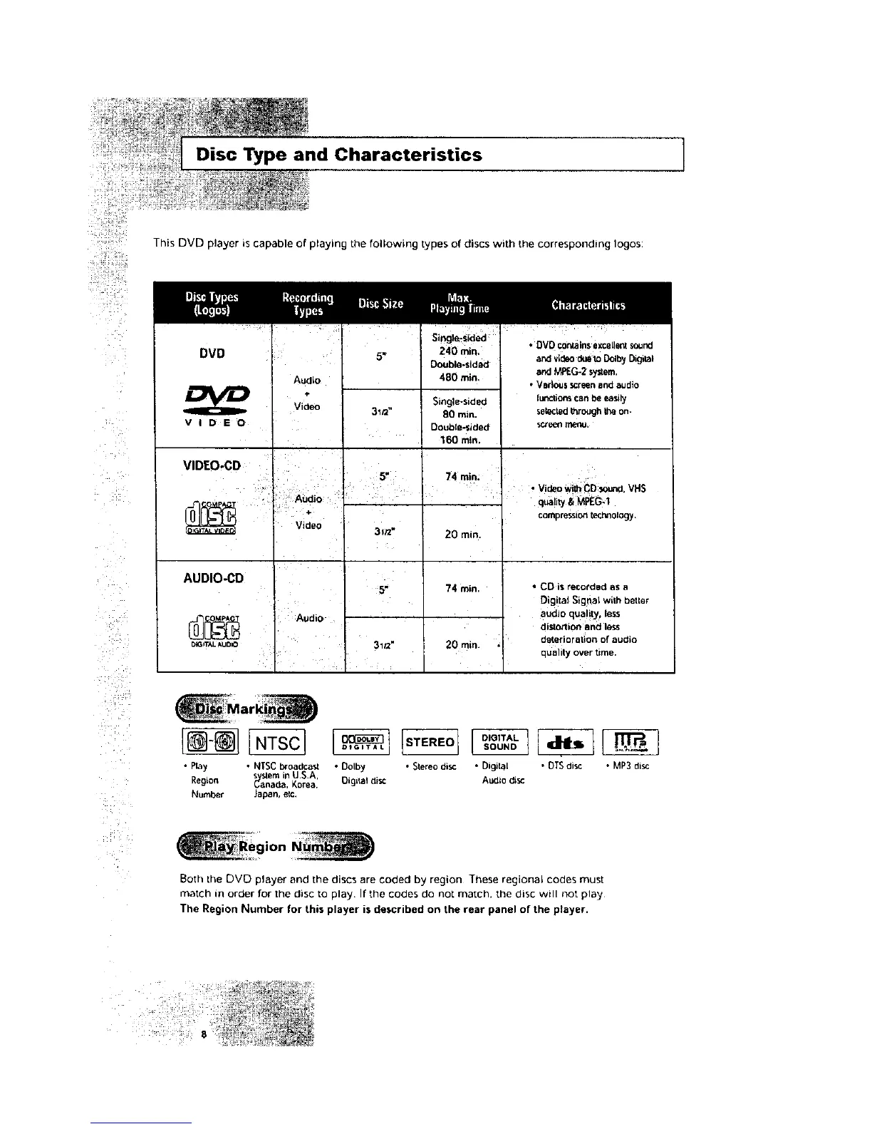 • Pray • NTSC broadcast • Dolby • Siereo ols¢ - Digital . DTS disc • MP3 disc