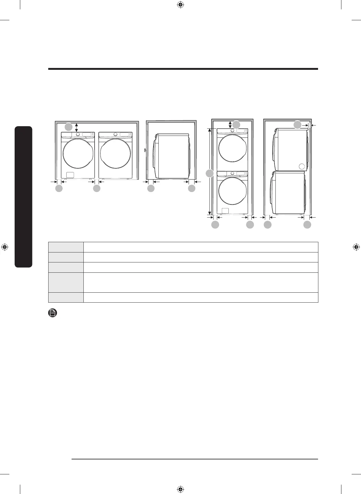 Este requisito de espacio libre se aplica para la instalación de la lavadora y la secadora juntas.