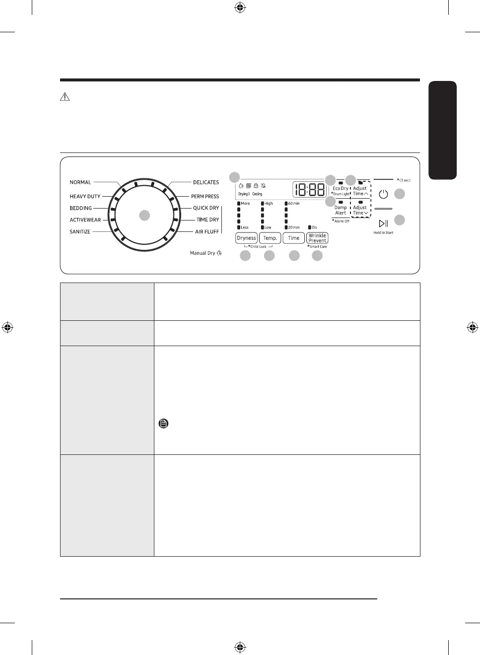 • Manual Dry: The drying time is fixed.