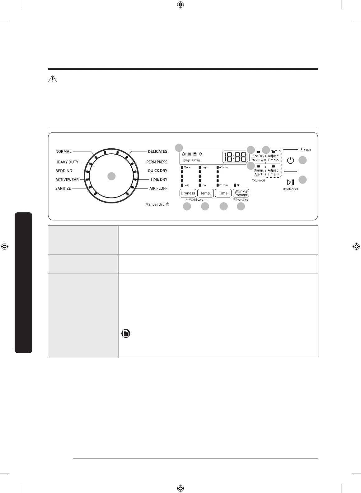 • Manual Dry: The drying time is xed.