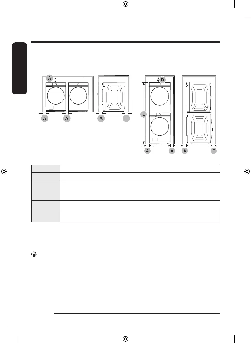 (B*): This clearance requirement only applies to the dryer. For washer's clearance requirement, see the