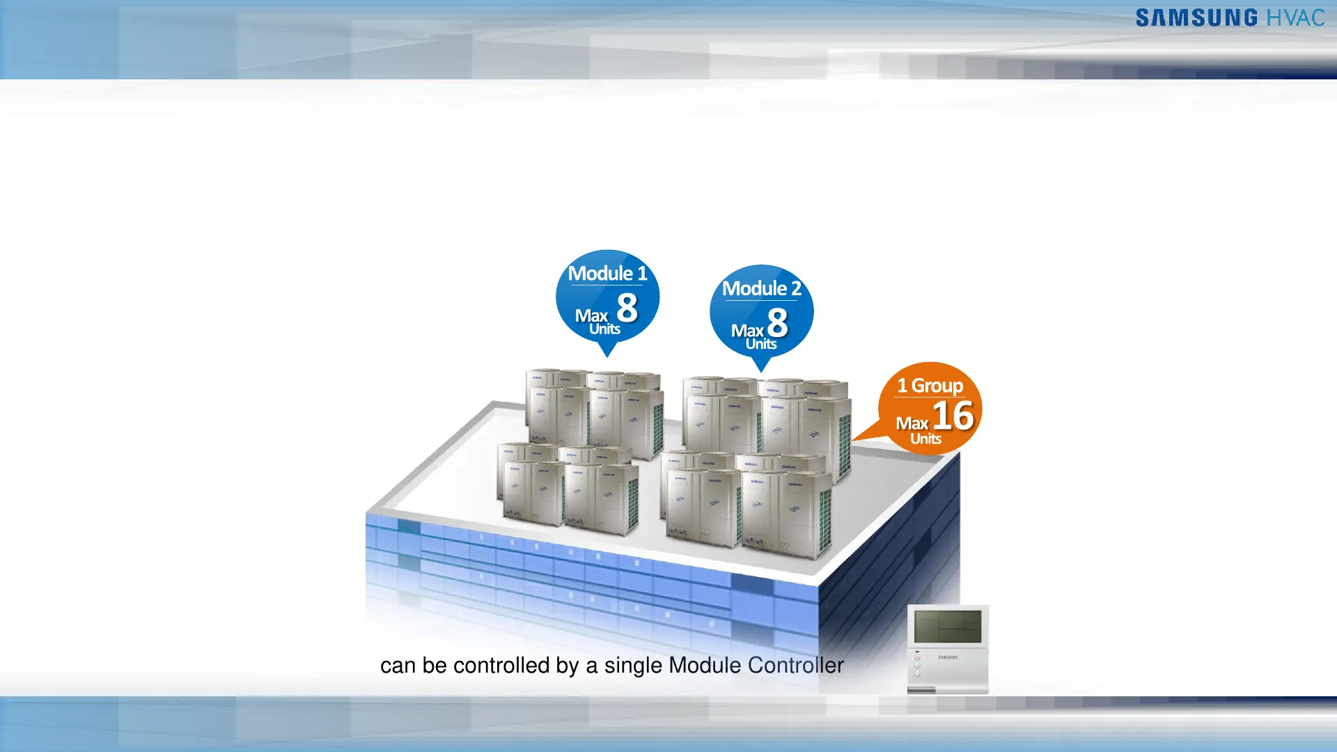 Group Consists of 2 to 8 modules with a maximum of 16 chiller units per group