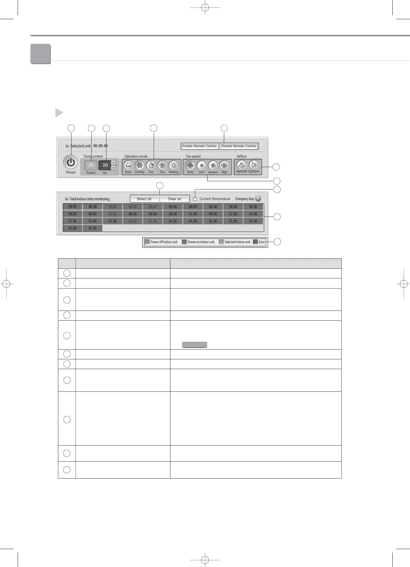 Indoor unit selection green. Multiple indoor unit are selected by pressing the Ctrl key and indoor