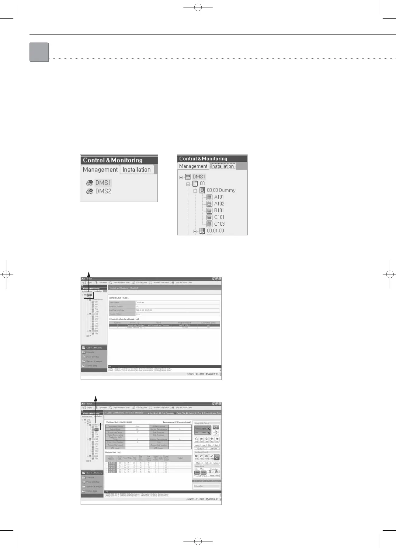 • Select the installation structure tab then select DMS connected to S-NET3; it is possible to see the