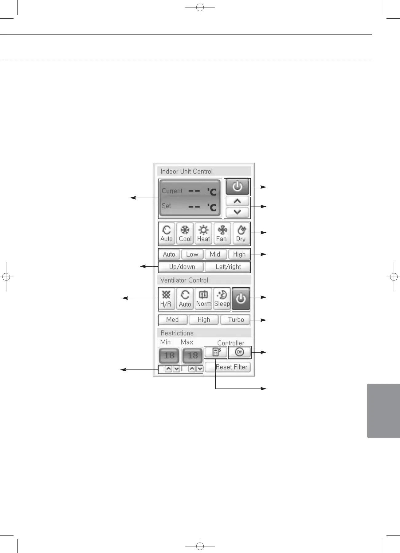 • Control indoor unit/ERV through the control window that appears on the screen.
