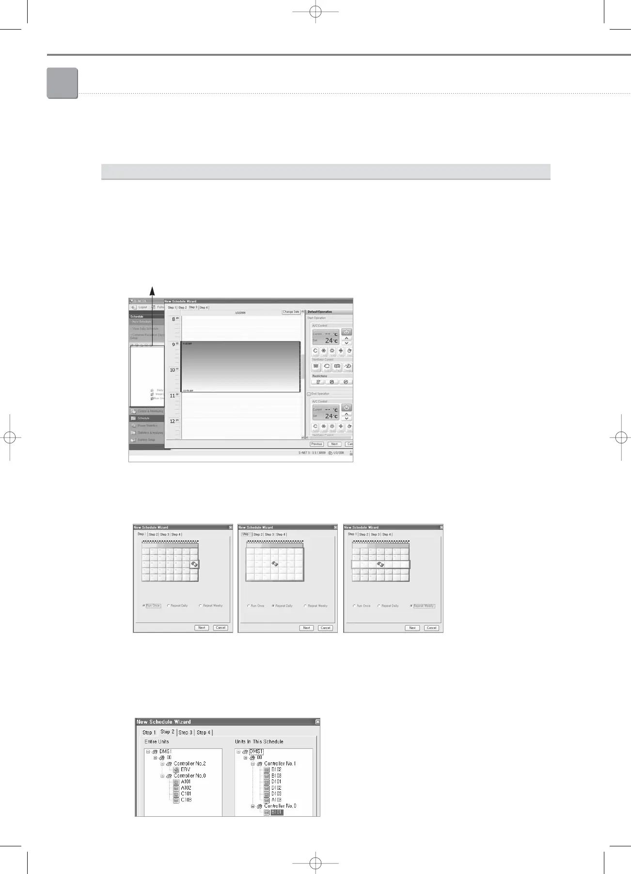• Able to set a schedule to control indoor units and ERVs. (creating, modifying, deleting).