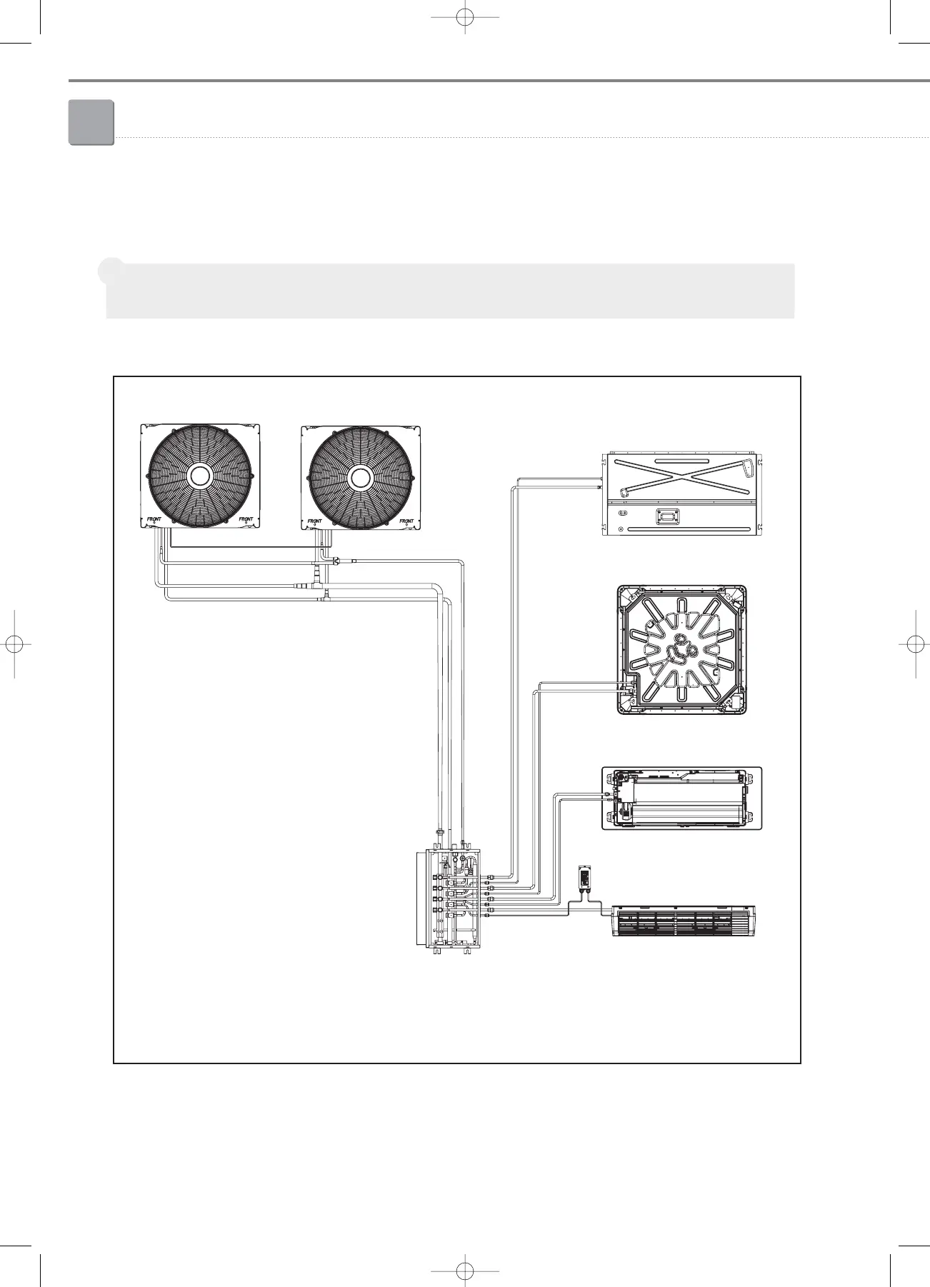 • Regarding piping work between the outdoor unit and MCU kits, selection of the branch joints and the piping work