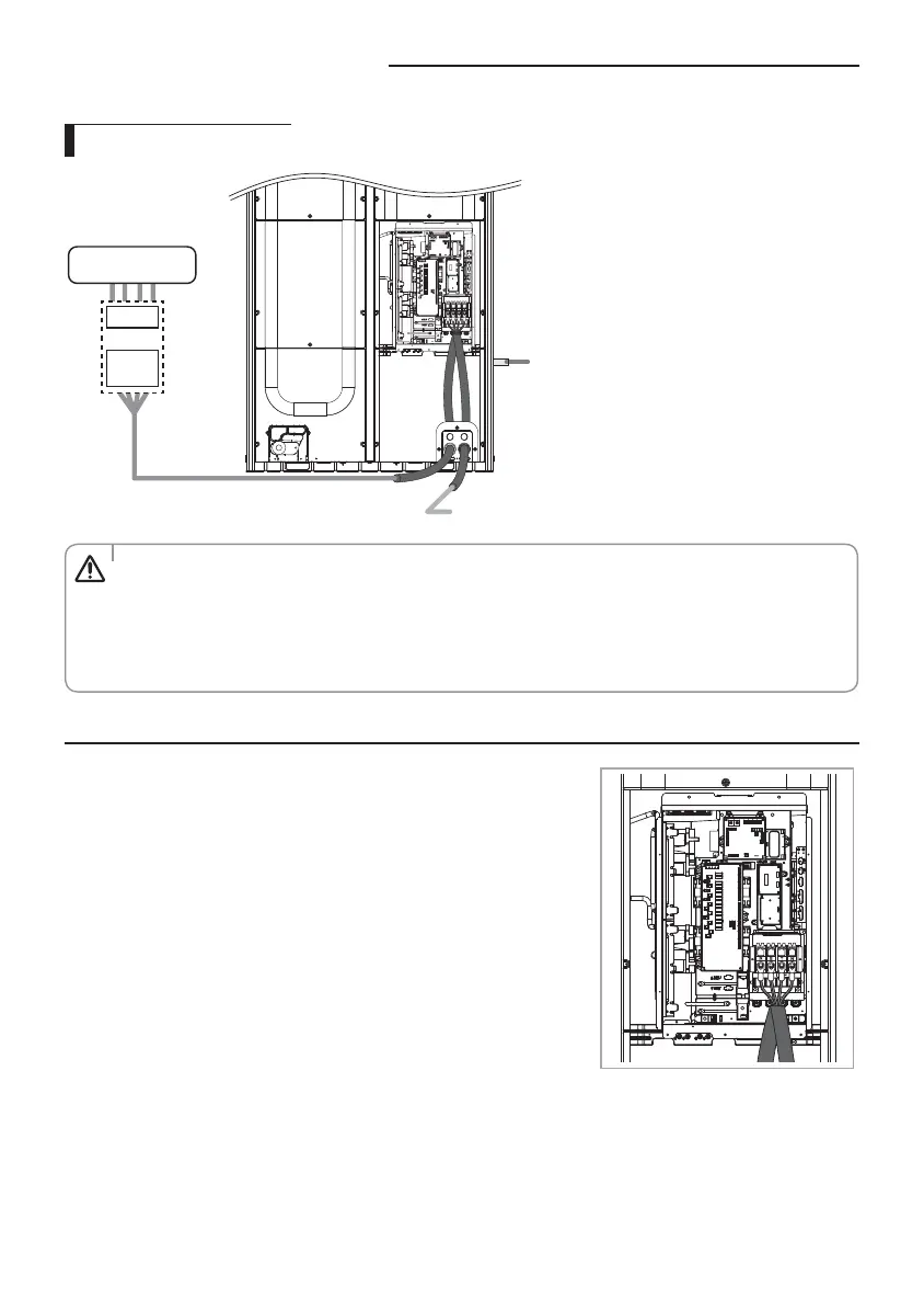 • Do not let the power cable come into contact with the pipes inside the outdoor unit. If the power supply cable