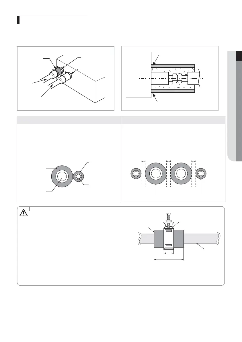 • Bind the refrigerant pipe with insulation tape if it