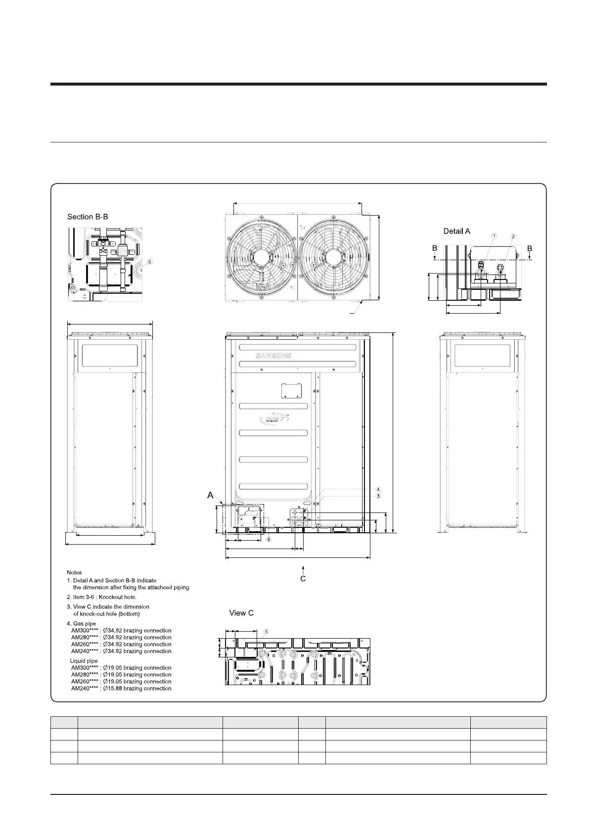 2 Liquid Ref. pipe See note 4. 5 Knock-out Hole for Ref. Piping (bottom)