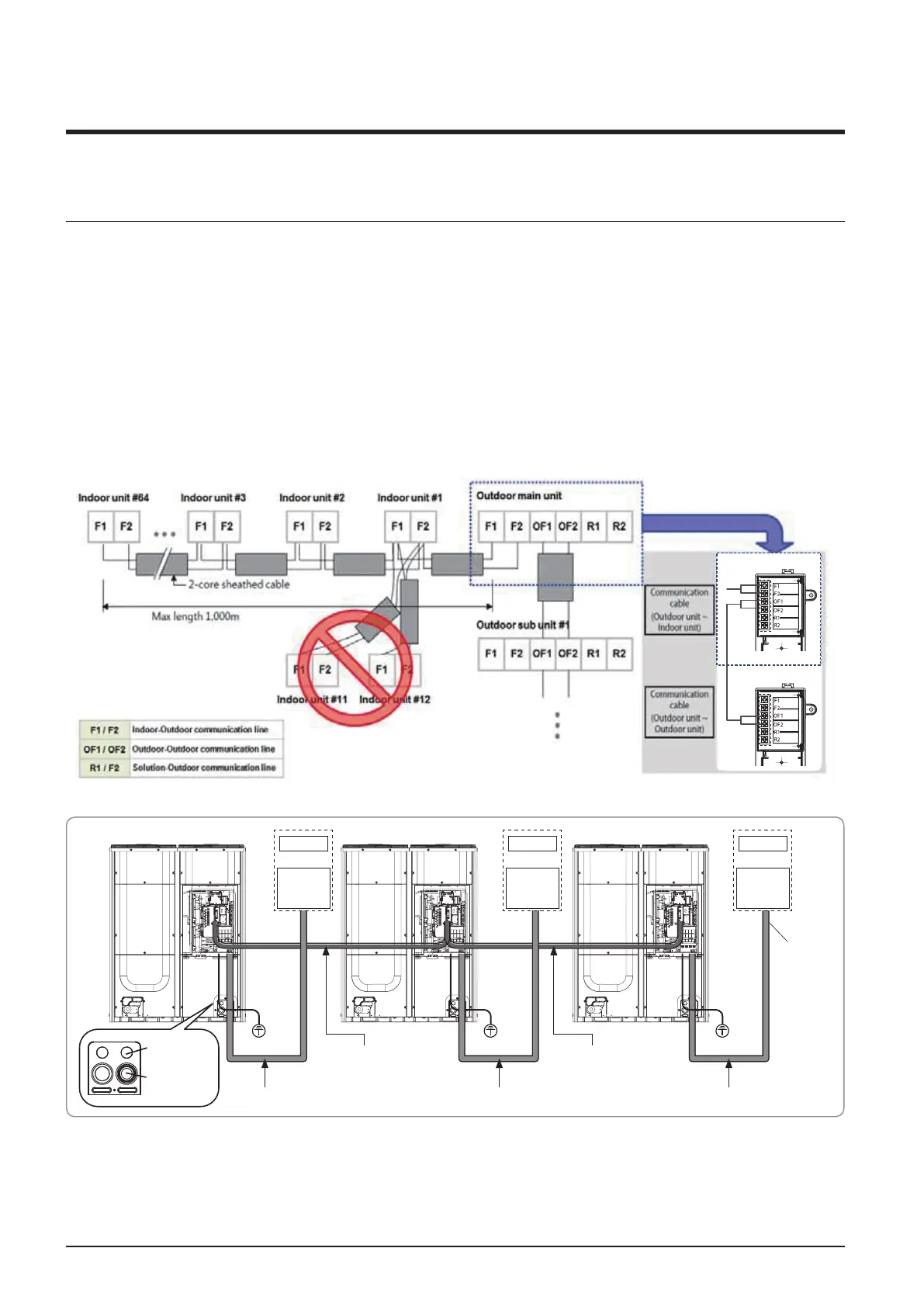 Maximum number of units that can be connected to the outdoor main unit is 64, so do not exceed this limit.