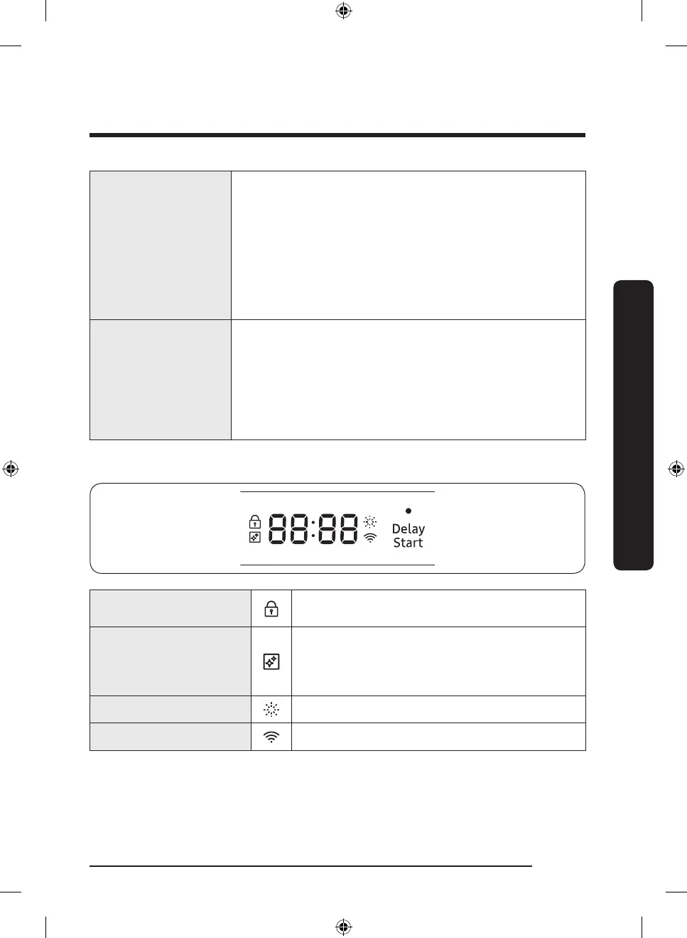 Rinse Rell indicator Lights up if the dishwasher runs out of rinse aid.