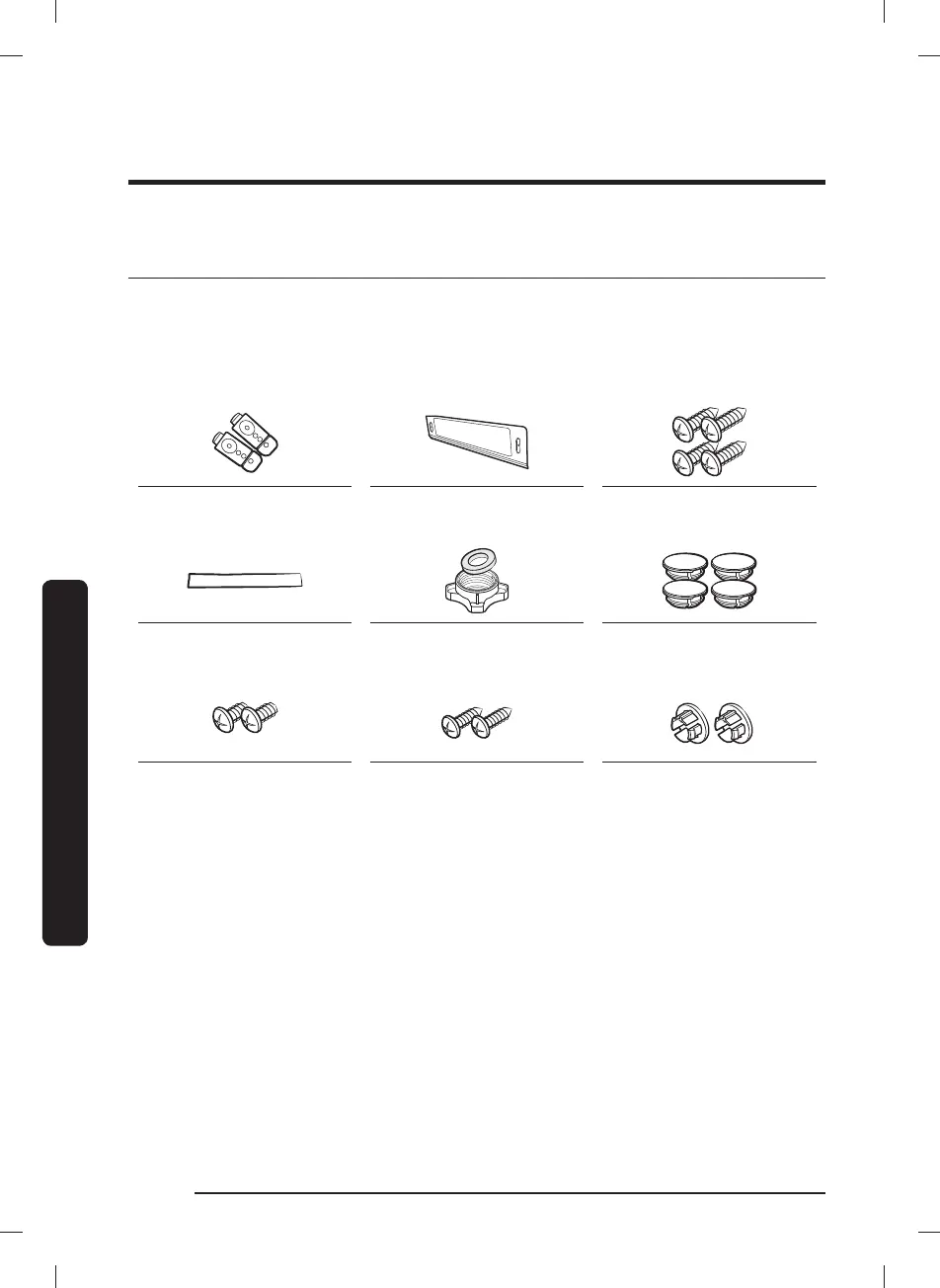 Provided with the dishwasher. Check when you unbox the dishwasher in STEP 5.