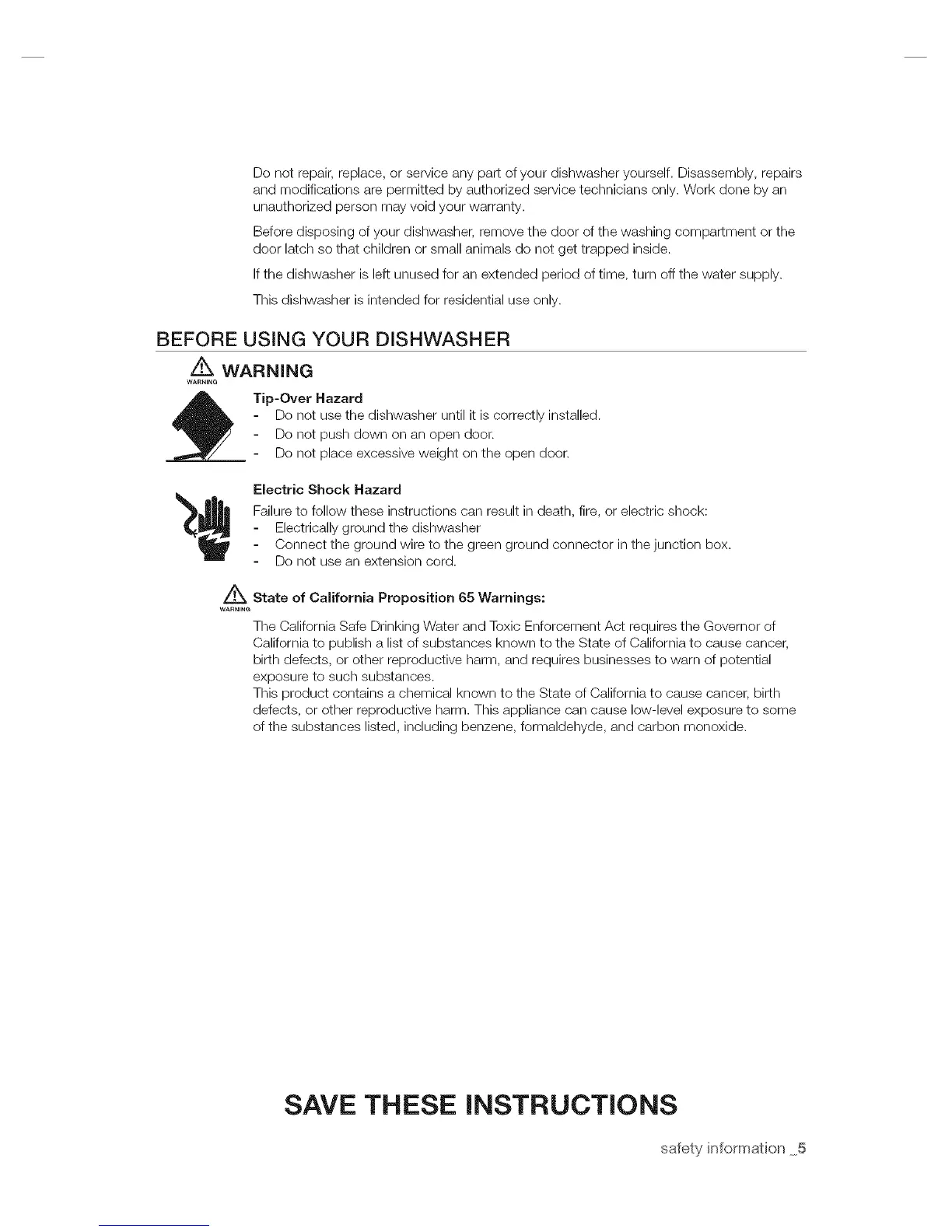 BEFORE USING YOUR DISHWASHER