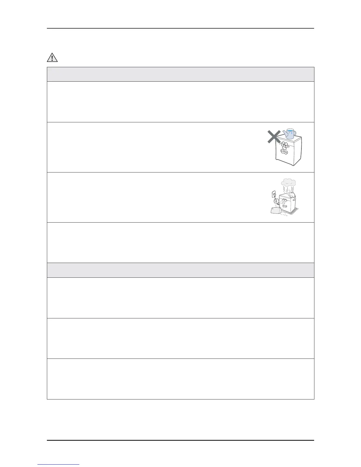 ➢ ,IWKHZDWHULVVSLOOHGLWPD\UHVXOWLQHOHFWULFVKRFNRU¿UH7KLVZLOODOVRVKRUWHQWKH