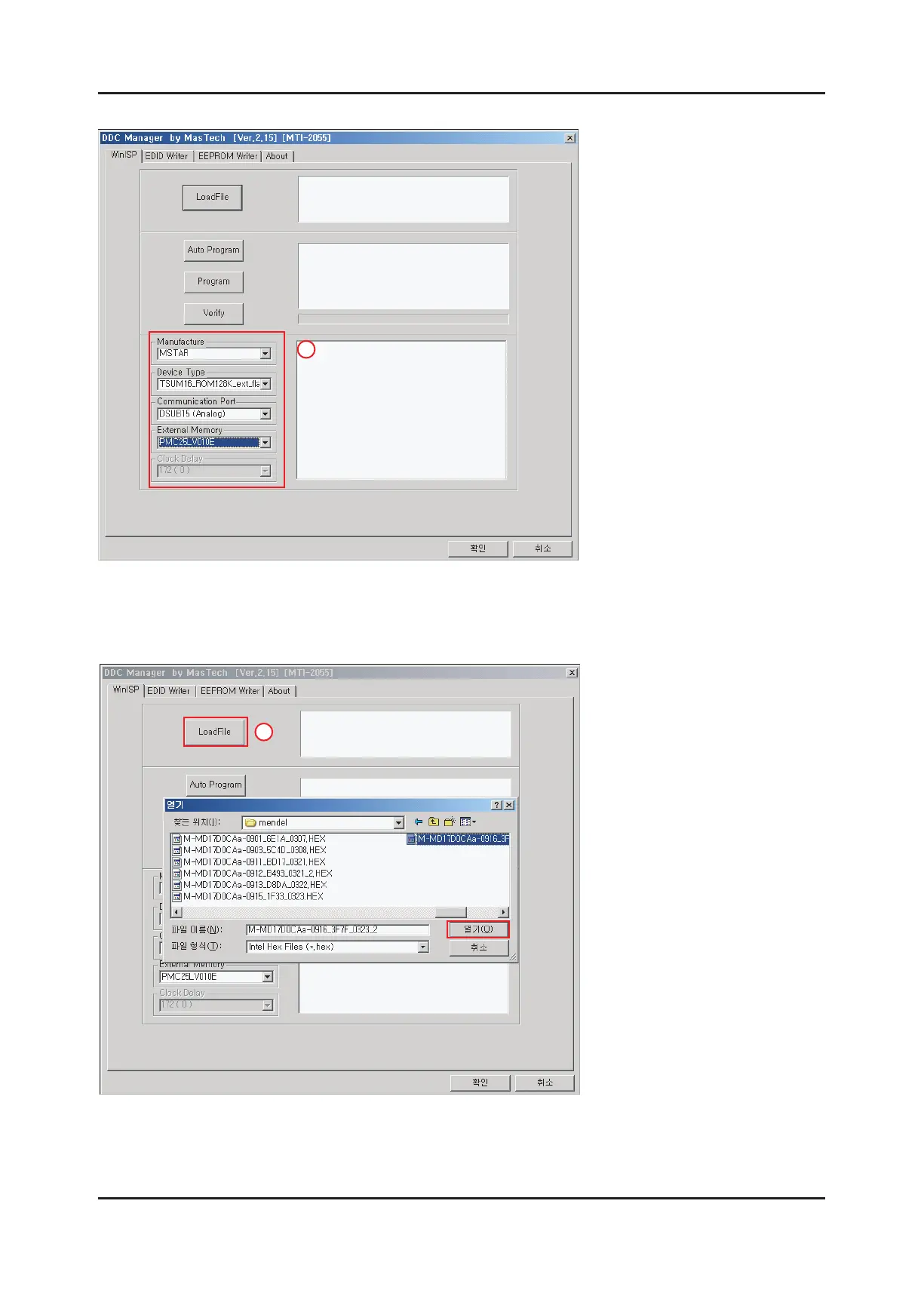 2) Click the LoadFile button, select an MCU code le, and then click the Open [O] button.