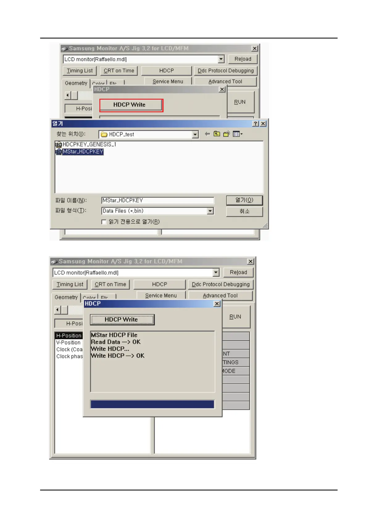 3. Click the HDCP Write button and select MStar_HDCPKEY.