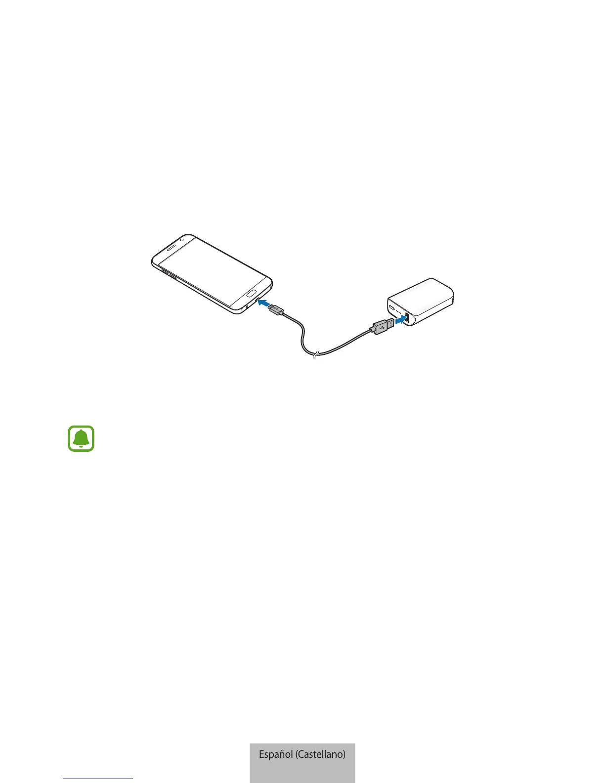 Cuando el dispositivo móvil esté completamente cargado, desconecte el cable USB de ambos