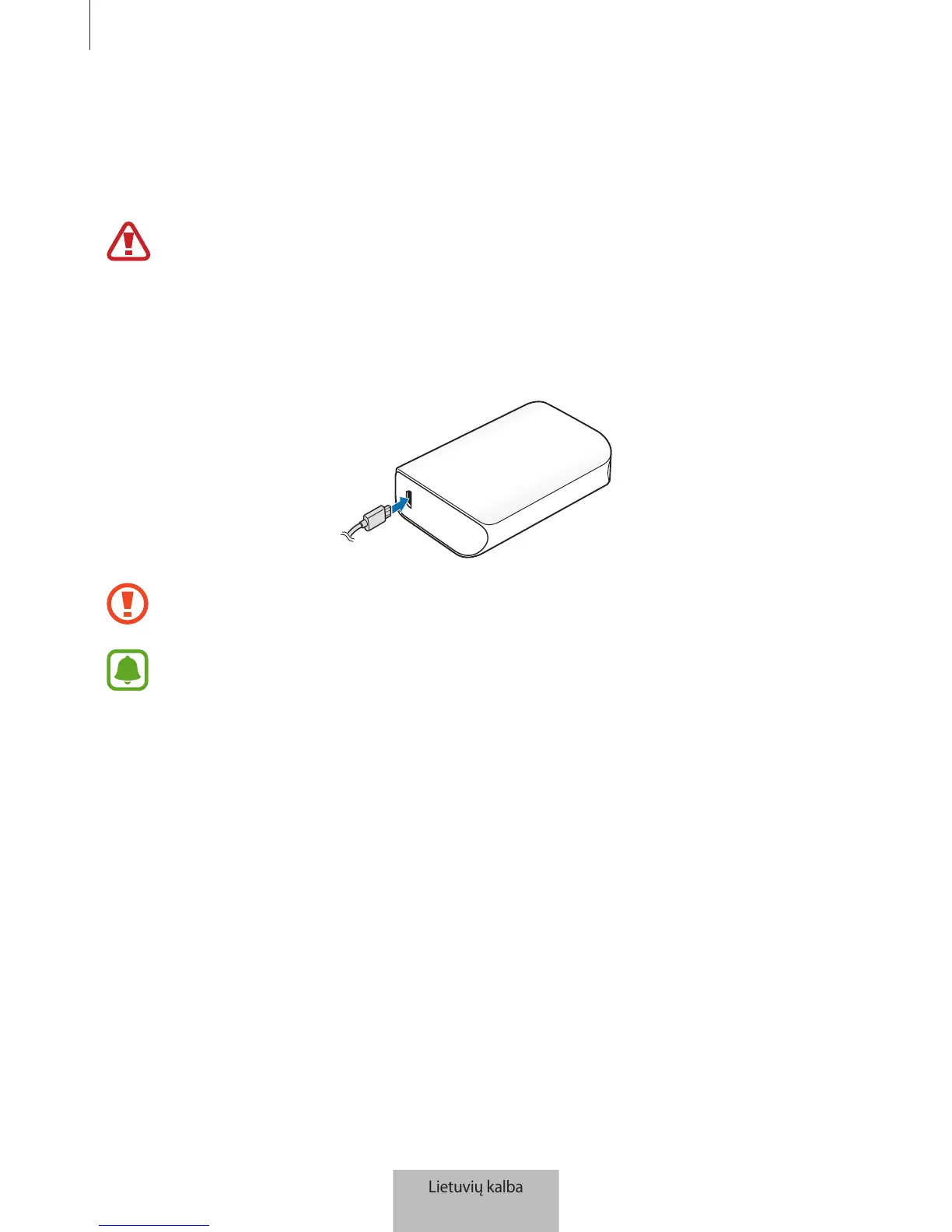 Naudokite tik „Samsung“ patvirtintus įkroviklius ir laidus. Naudojant nepatvirtintus