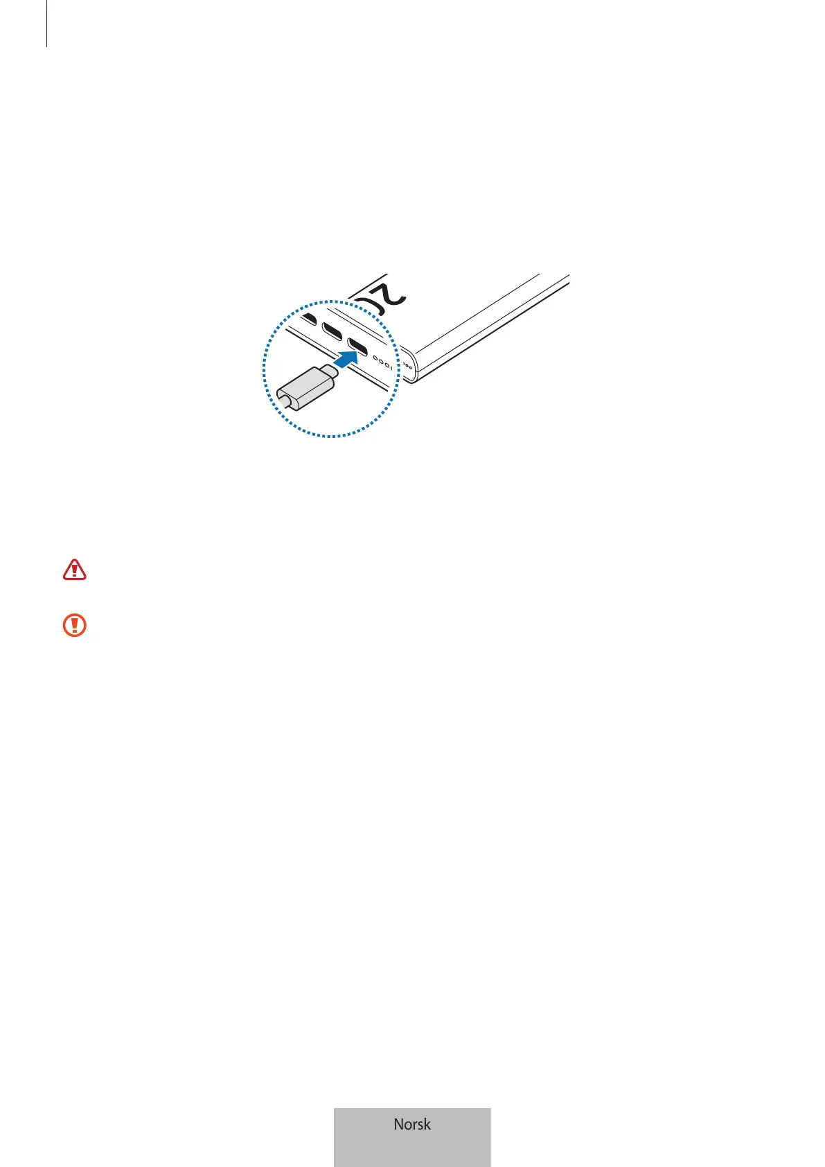 Bruk kun Samsung-godkjent lader og kabel som er utformet spesielt for produktet. Inkompatibel