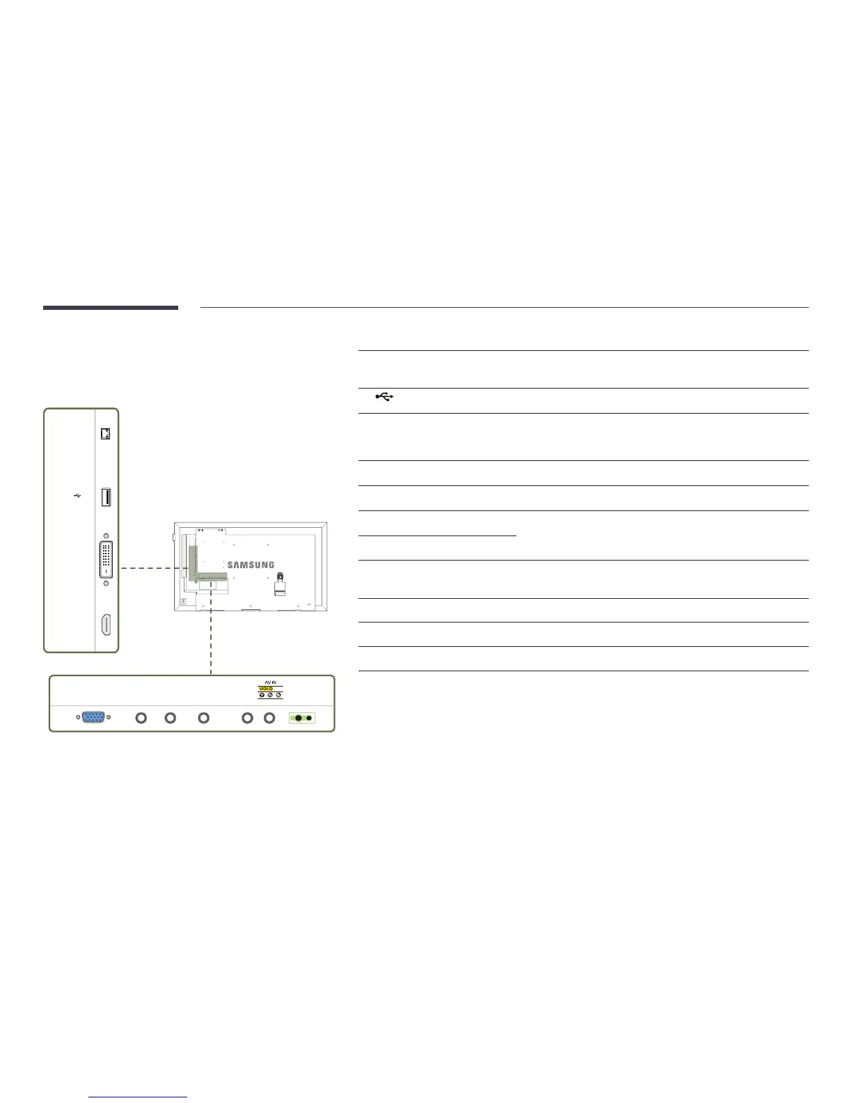 DVI IN: Connects to a source device using a DVI cable or HDMI-DVI cable.