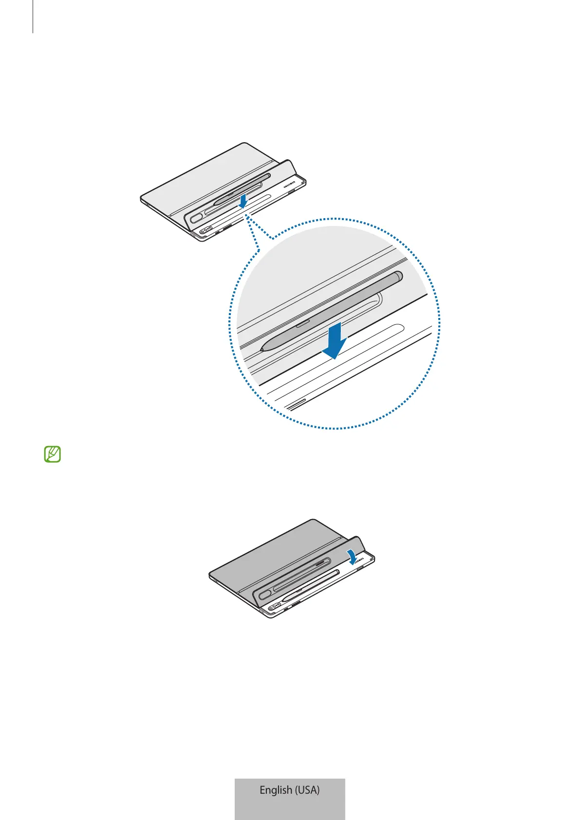 1 Attach the S Pen to the tablet as shown in the image below.