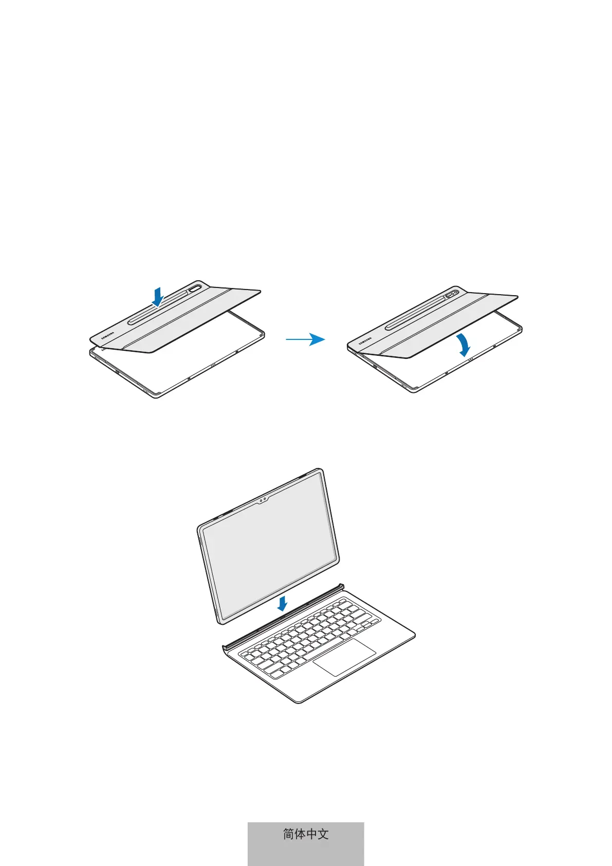 先安装SPen保护盖,然后按压支架保护盖的剩余部分。
