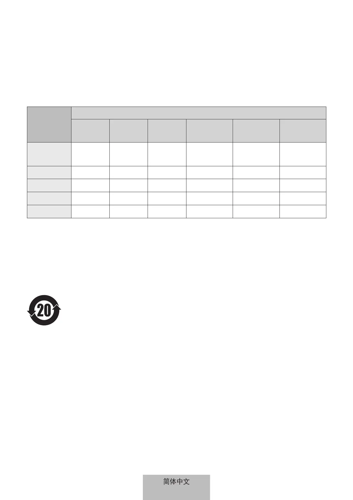 本产品的“环保使用期限”为20年,其标识如左图所示。电池等可更换
