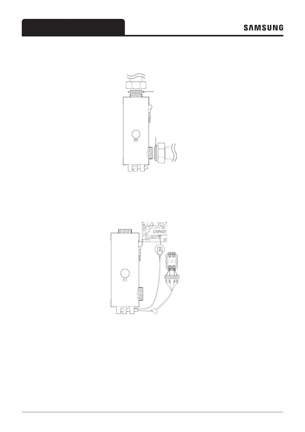 3 Connect the wires of the backup heater to the PBA connector (CNP401) and ② Magnetic contactor, as shown in the