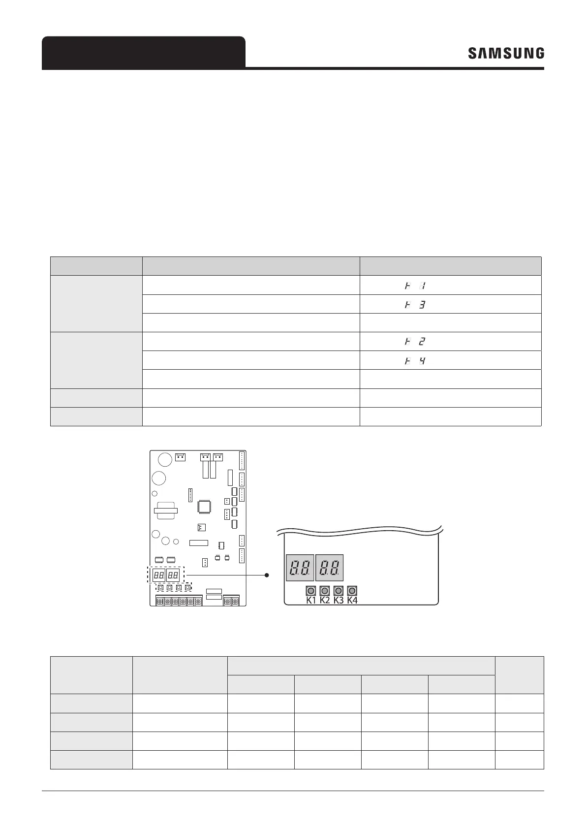 3 Press K1 or K2 on the outdoor unit PCB to run the test mode and stop.